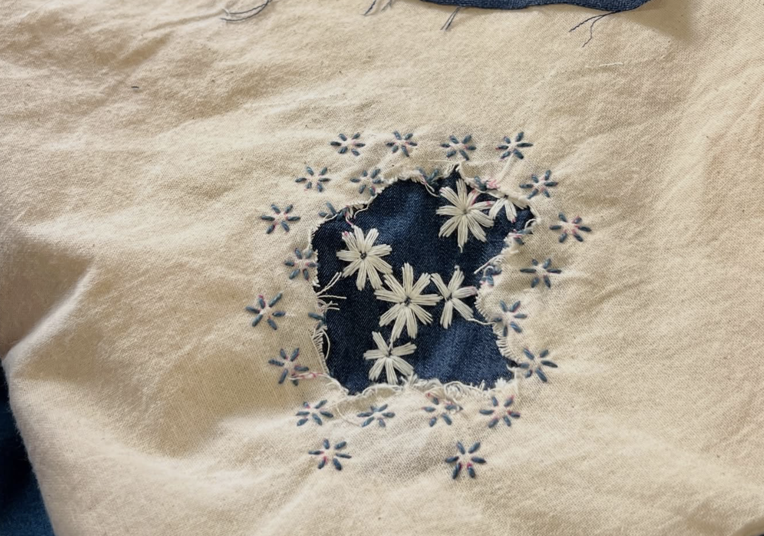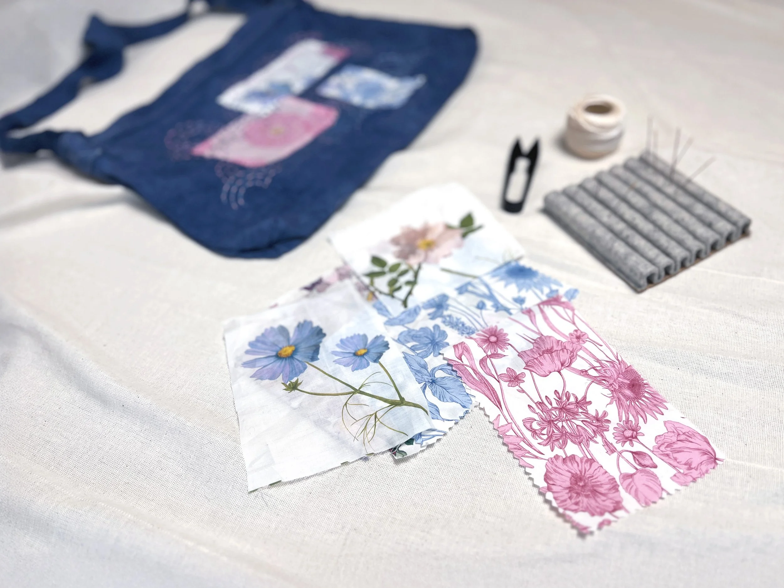 During these sashiko & boro slow stitching sessions we will be reusing floral prints by Liberty London and explore nature-inspired sashiko patterns.