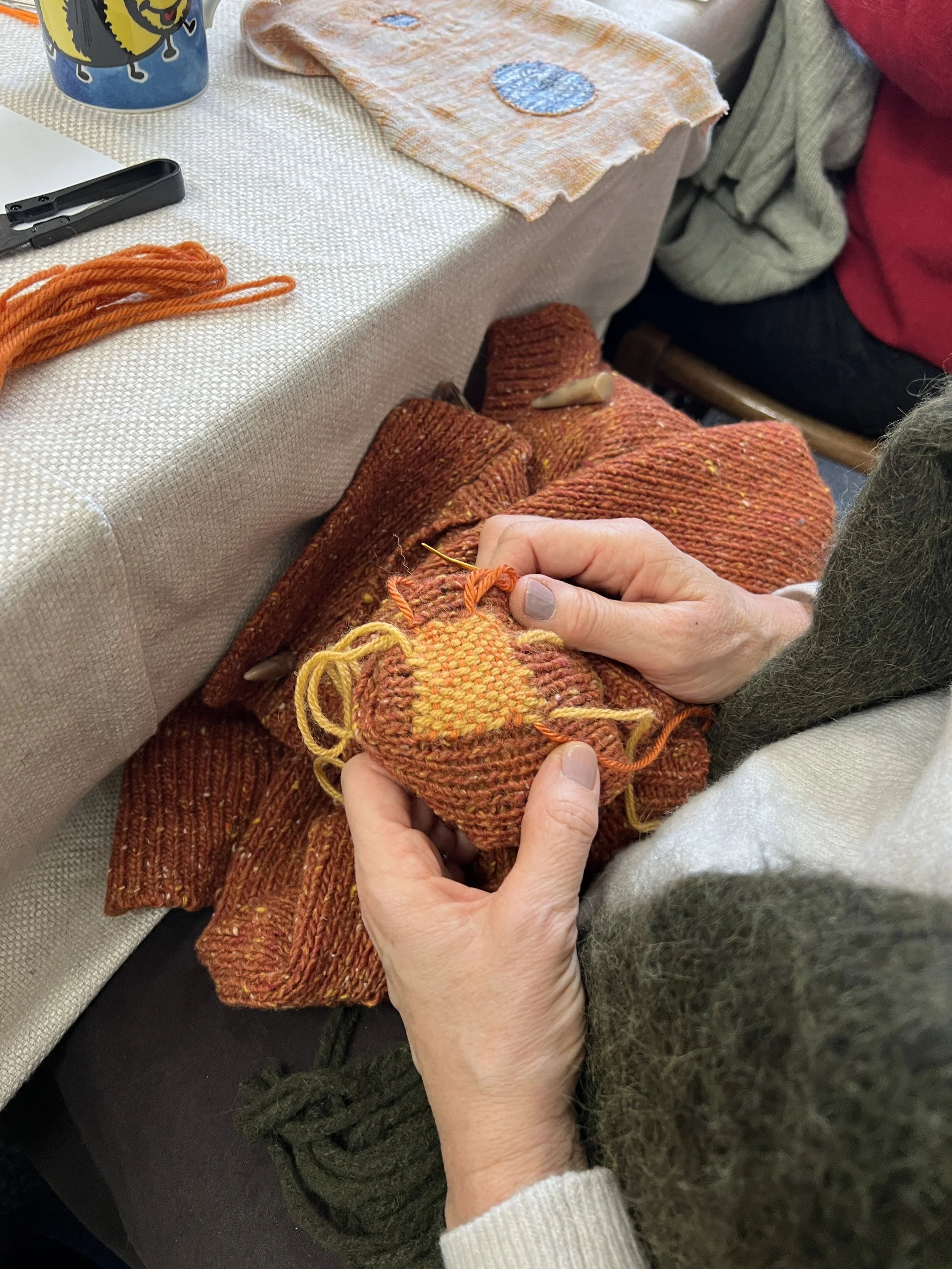 — Kay from St Albans“A mindful session being creative, learning a new skill and helping to preserve much loved knitwear. Marina is an excellent teacher with lots of inspiration and patience.”