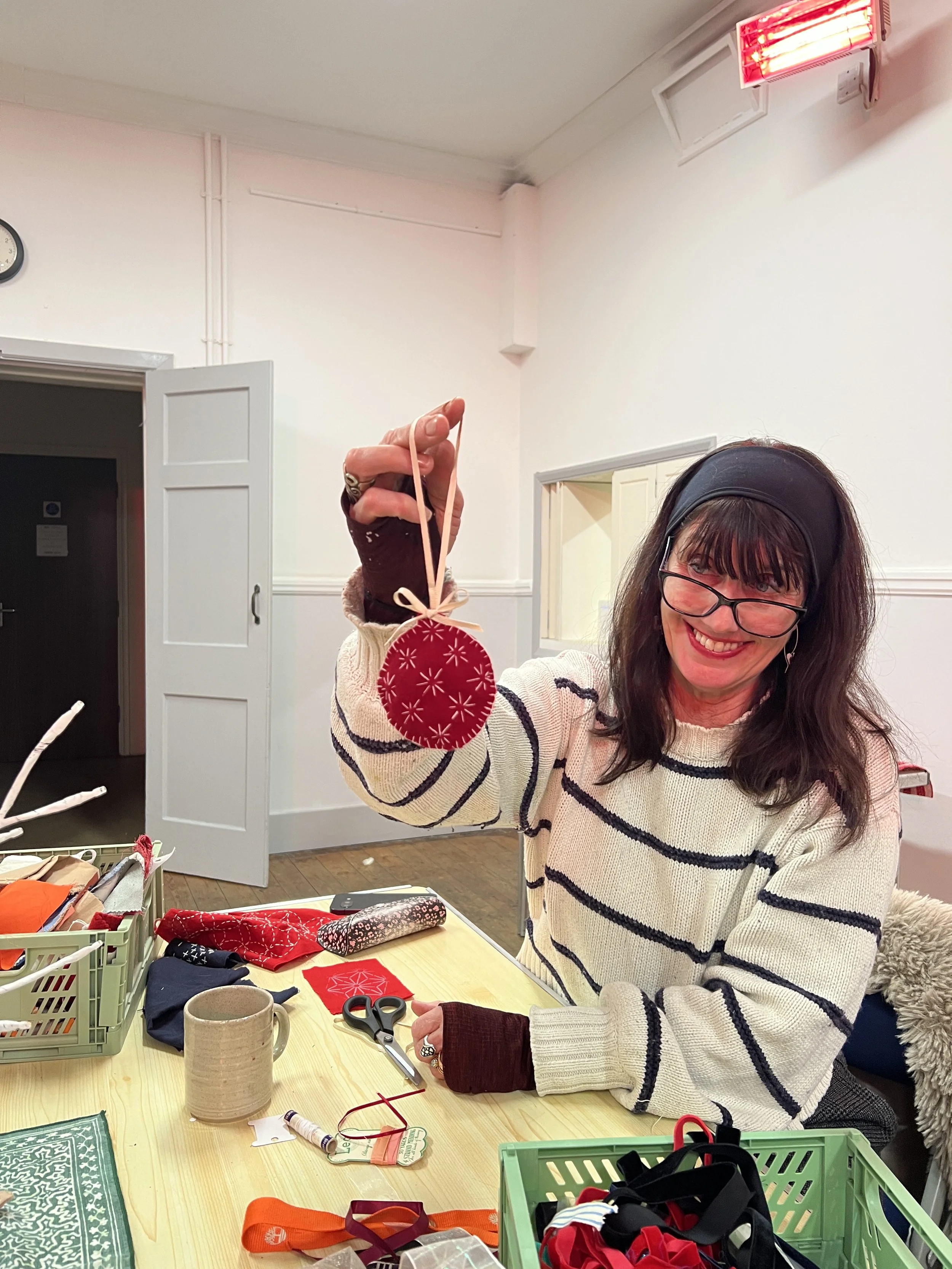 “A lovely slow couple of hours learning about and doing sashiko. Really enjoyed it. Marina was super helpful and would recommend it - so much so that have signed up to her "visible mending" class too.”
